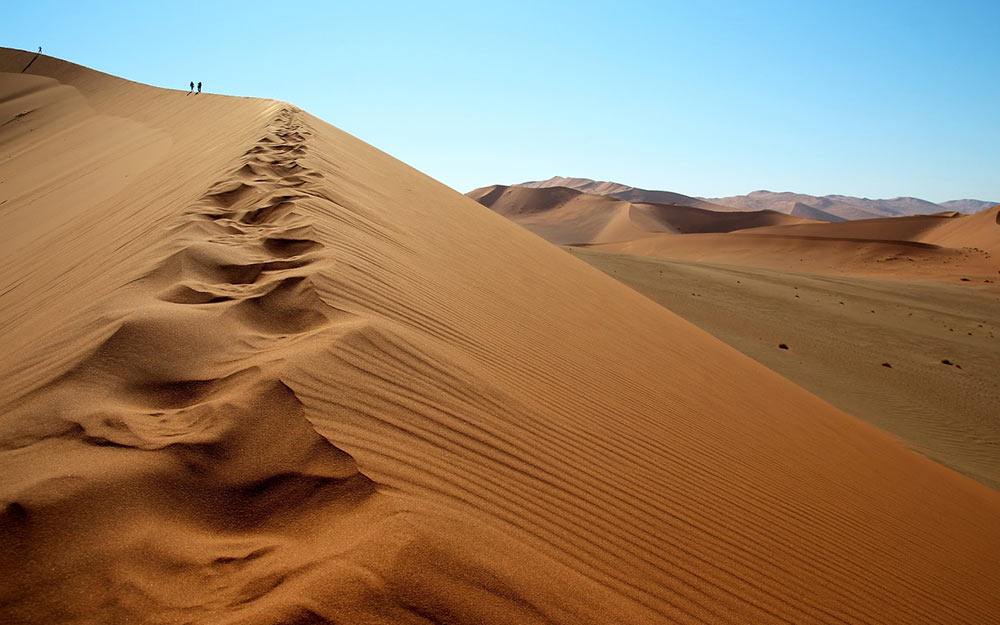 Dag 11-12 Sesriem ligt aan de voet van de Sossusvlei die bekendstaat om haar oranje zandduinen. Voor nog geen vijf euro ontdek je: de uitgestrekte Sossusvlei, de veertig meter diepe Sesriem Canyon, de 170 meter hoge Duin 45 en de zoutpannen. Ook zie je er de hoogste duin ter wereld. Met maar liefst 383 meter is Duin 7 het klapstuk van de Sossusvlei.