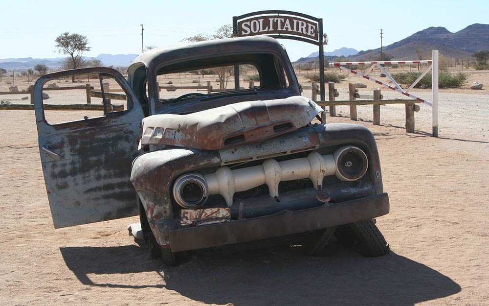 Dag 13-14 Via de gravelwegen in het Namib-Naukluft National Park bereik je Solitaire. Behalve een restaurant, benzinestation, postkantoor, gastenverblijf en een winkeltje, vind je hier helemaal niets. De meeste mensen stoppen hier dan ook alleen om te tanken. Toch is het leuk om even een bezoekje te brengen aan het restaurant. Hier eet je namelijk de beroemde appeltaart van ‘Moose Mcgregor.’