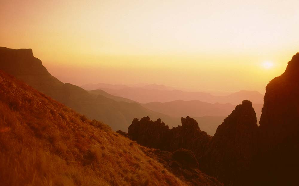In een terreinwagen schud je heen en weer, terwijl je voorzichtig naar buiten kijkt. De ene haarspeldbocht volgt na de andere en de onverharde weg lijkt soms onberijdbaar. Gelukkig maakt het uitzicht alles goed: de eindeloos reikende toppen van de Drakensbergen lijken haast goud in het gele zonlicht.