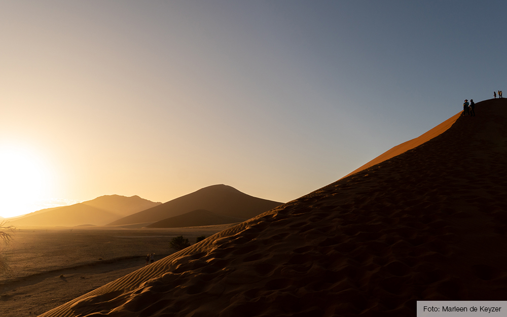 - Beklim ‘Big Daddy’, die met een hoogte van 325 meter ver boven de andere duinen uitsteekt. De afdaling komt uit in de wereldberoemde Dodevlei.