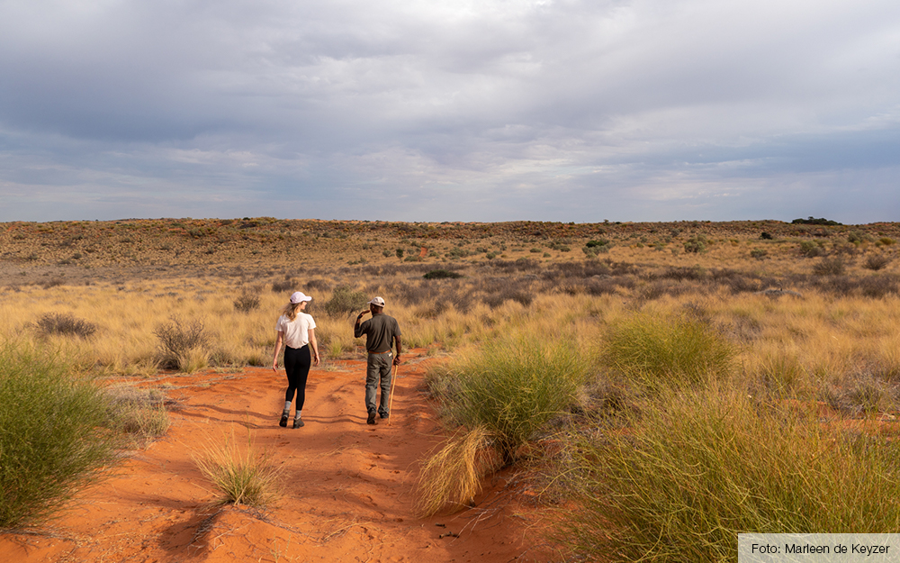 - Maak een wandelsafari door de rode duinen om op zoek te gaan naar helende kruiden en de small five. Je gids leert je hoe de San leefden van en met de natuur.