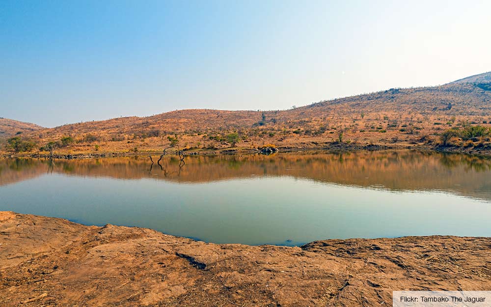 De krater van een dode vulkaan zorgt voor de ongewone setting van het Pilanesberg National Park. In de prehistorie was dit een kolkende vulkaan, maar nu is het groot stuwmeer met daaromheen drie heuvels van gestolde lava. Dit is een van de grootste vulkanische complexen van de wereld!