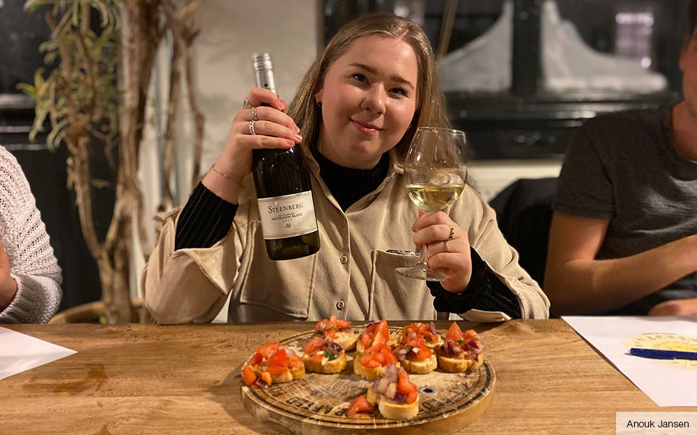 Anouk: “Ik ben een ongelofelijke bofkont. Mijn vriend werkt als kok voor Ron Blauw en maakt ook thuis de lekkerste gerechten. Maar de wijn mag ik erbij uitkiezen! Ik bezocht een flink aantal wijnboerderijen in Zuid-Afrika en weet er daardoor meer van af. Mijn lievelingsplek is het Delaire Graff Estate in Stellenbosch. Ik heb nog steeds een paar flessen Delaire Graff Estate Botmaskop 2017 (€20) in huis liggen. Dat is een zeldzame blend van cabernet sauvignon, cabernet franc, petit verdot, merlot en malbec."